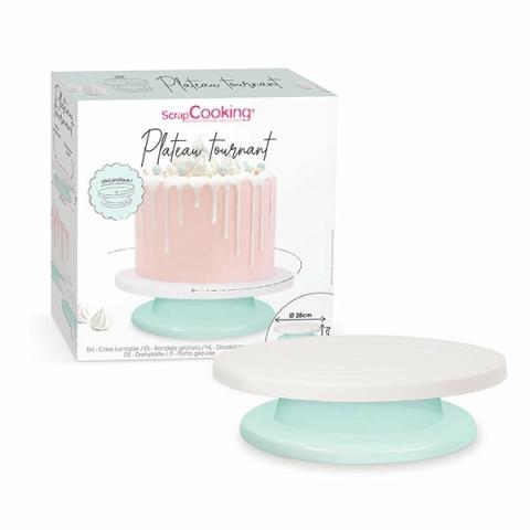 Surélevé et pivotant, le plateau tournant 28 cm est l’appareil indispensable pour réaliser des gâteaux garnis et pochés à la douille. Maniable, il est vraiment pratique : plus besoin de tourner autour de la table ! Léger, démontable, il est facile à nettoyer.Cake design ou cupcakes, tartes décorées de spirales de crème ou de meringue, il permet de garnir, recouvrir ou décorer un gâteau proprement, en arasant la crème facilement.